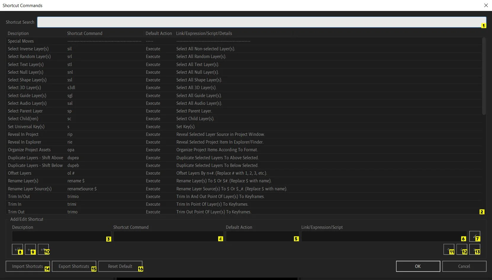 To execute a move based on the shortcut key, start typing the shortcut key into the Link/Command text box. Press enter to execute the command based on the shortcut key.